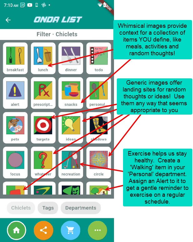 Chiclets let you create subsets of items from ALL the products. Instead of selecting from 250 - 500 items, a chiclet is a visual trigger for a set of items you control. See only what’s relevant to your decisions.